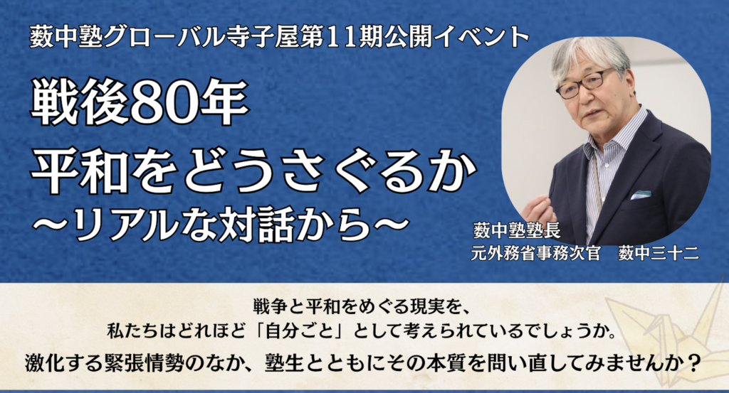 戦争と平和をめぐる現実を、今、私たちはどれほど「自分ごと」として考えているでしょうか。緊張の高まる情勢のなか、今期の塾生とともに、その本質を問い直してみませんか?